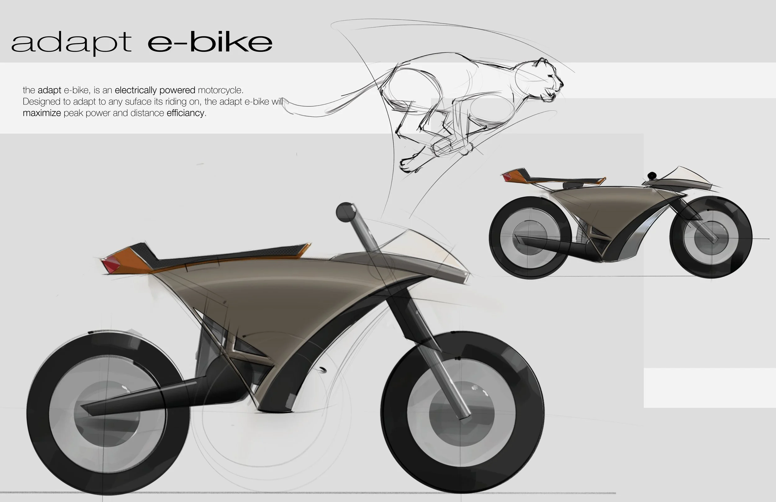 The Adapt E-Bike allows the user to ride on any terrain by shifting its wheelbase and ride height to minimize drag and maximize efficiency.